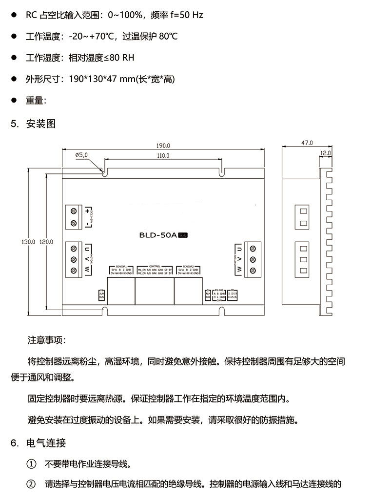 BLD-50A為雙通道電機控制器。