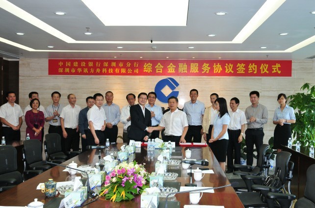 2012年9月28日,華訊方舟集團(tuán)與建設(shè)銀行深圳分行的《綜合金融協(xié)議》簽約儀式在建設(shè)銀行深圳分行總部舉行。建設(shè)銀行深圳分行行長劉軍,副行長戴惠明,常務(wù)副主任朱剛,以及華