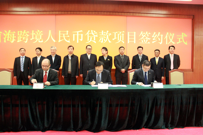 2013年1月28日,艷陽高照,和風(fēng)送爽,深圳市市民中心B區(qū)多功能廳內(nèi)人潮涌動,喜氣洋洋。前海跨境人民幣貸款項目簽約儀式在此舉行。15家在香港經(jīng)營人民幣業(yè)務(wù)的銀行和15家前